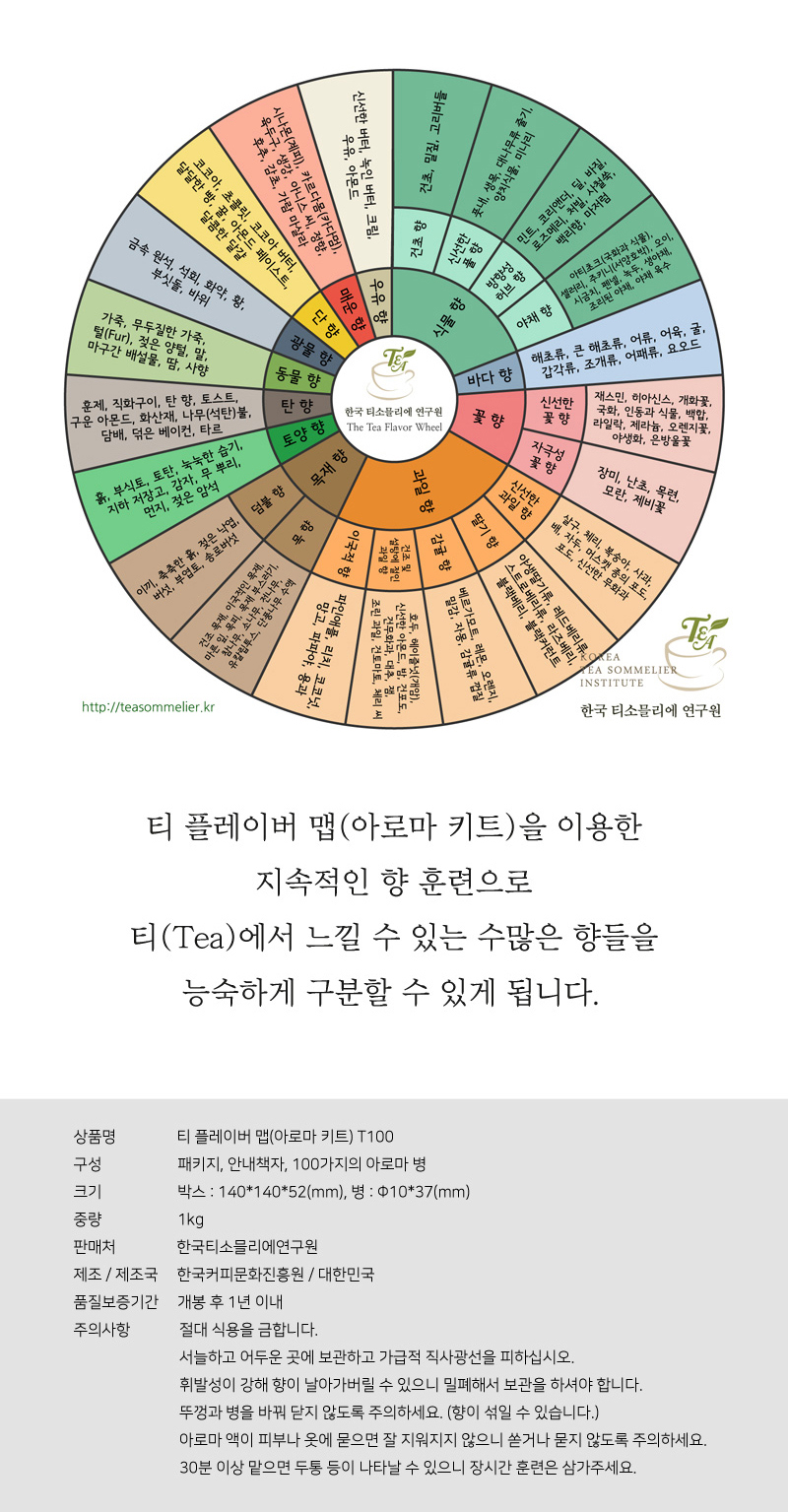 Ƽ(TEA)¿¡¼ ¸ÃÀ» ¼ö ÀÖ´Â 100°¡Áö Çâ±â¸¦ ´ãÀº '¾Æ·Î¸¶ ŰƮ'¸¦ Çѱ¹ Ƽ¼Ò¹É¸®¿¡ ¿¬±¸¿ø¿¡¼ ÆÇ¸ÅÇÕ´Ï´Ù!¾Æ·¡ »óǰ ¾È³»¸¦ ÂüÁ¶ÇϽðí, ±¸¸Å¿Í °ü·ÃÇÏ¿© ±Ã±ÝÇÑ »çÇ×Àº ÀüÈ ¶Ç´Â À̸ÞÀÏ·Î ¹®ÀÇÇØÁÖ¼¼¿ä.- À̸ÞÀÏ : info@teasommelier.kr